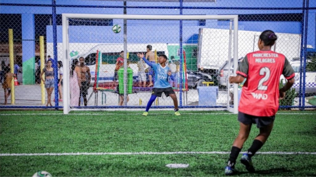 A obra no Campo dos Milagres incluiu a instalação de grama sintética, telas de alta densidade, pintura, além de melhorias como terraplanagem, drenagem e a substituição das traves. A Emlurb também realizou reparos nos brinquedos próximos ao espaço, contribuindo para uma experiência completa de lazer.