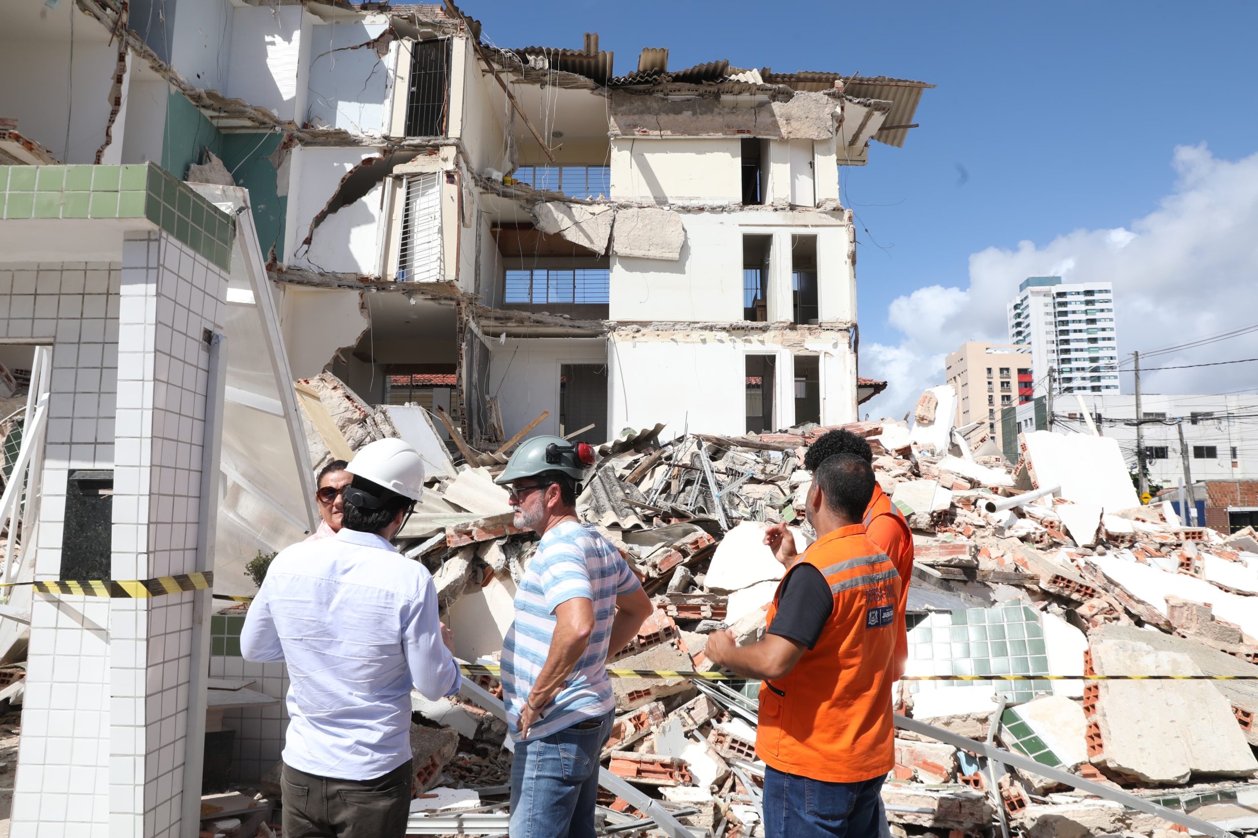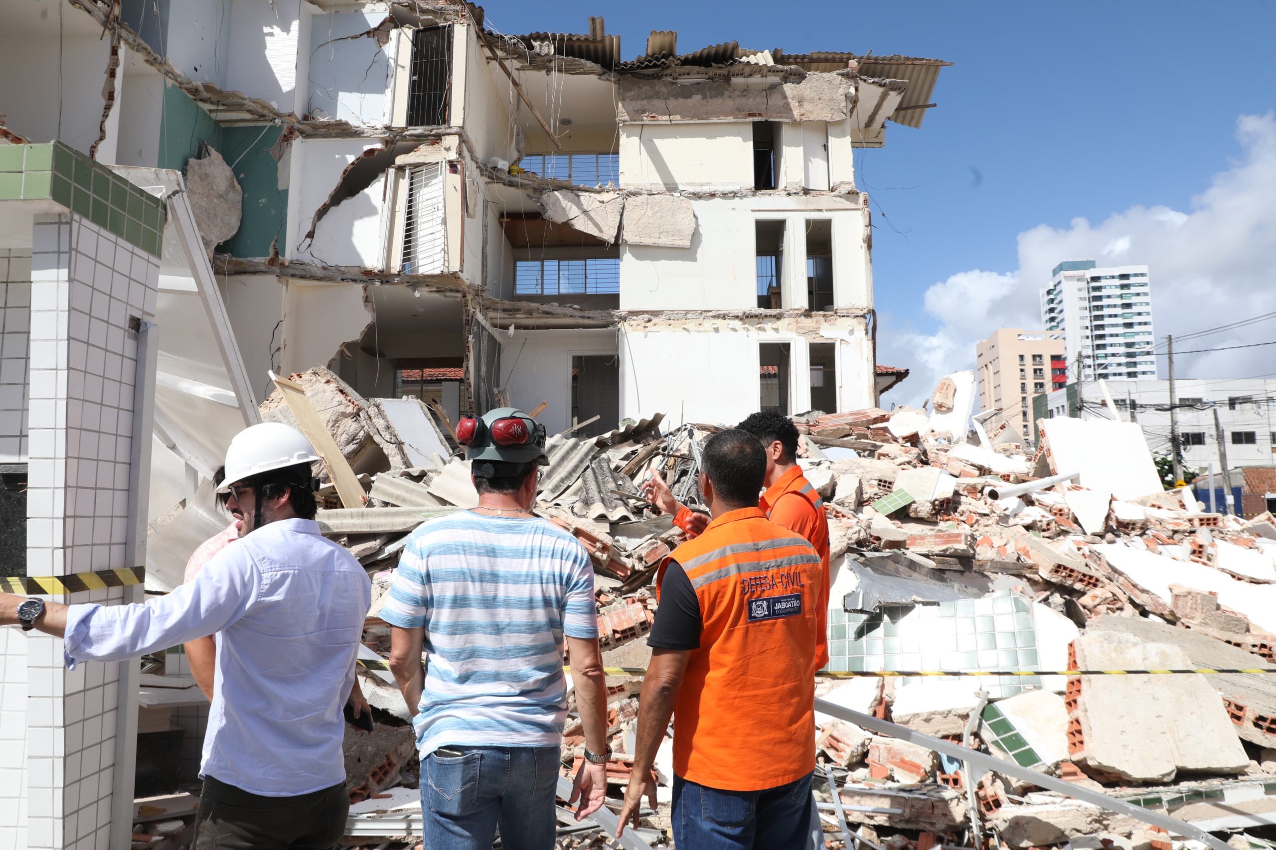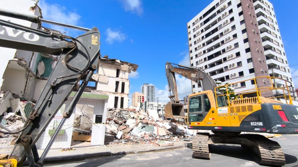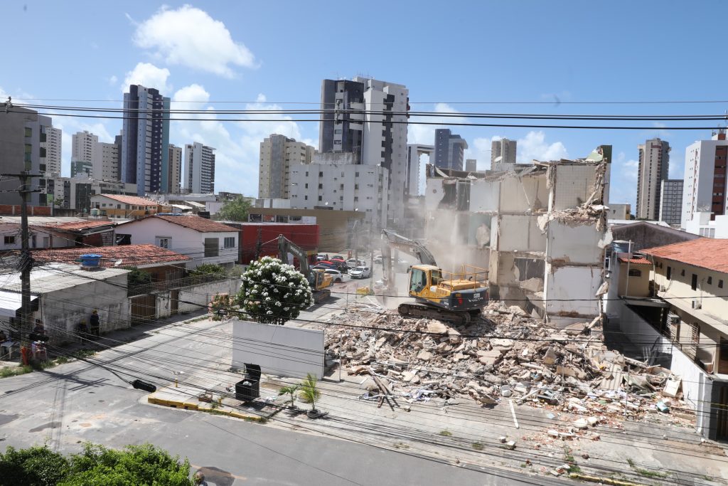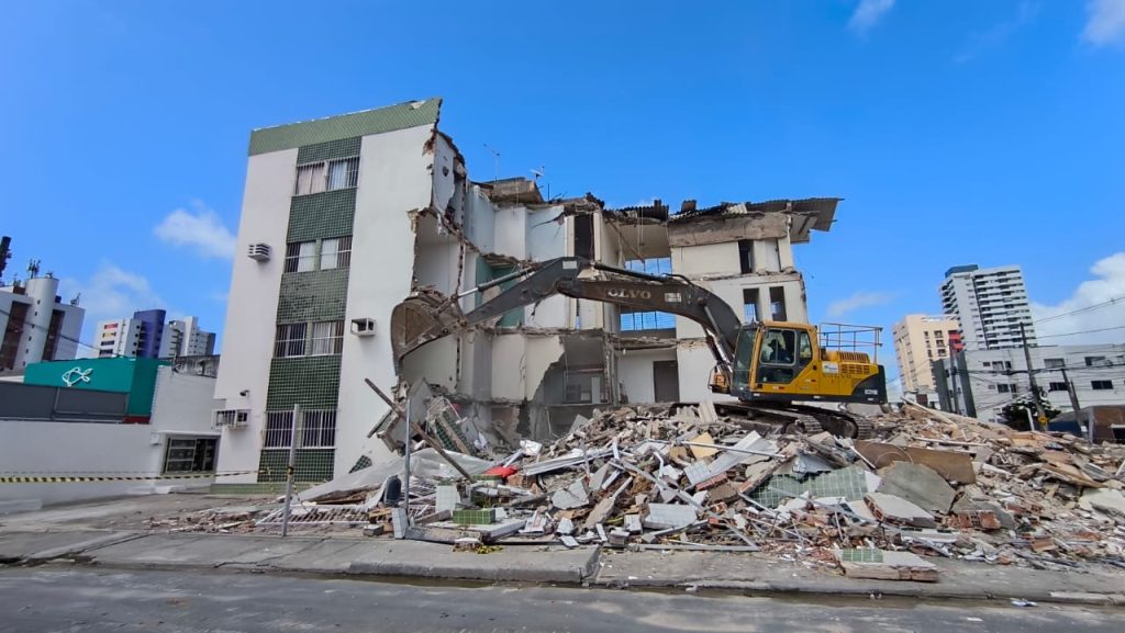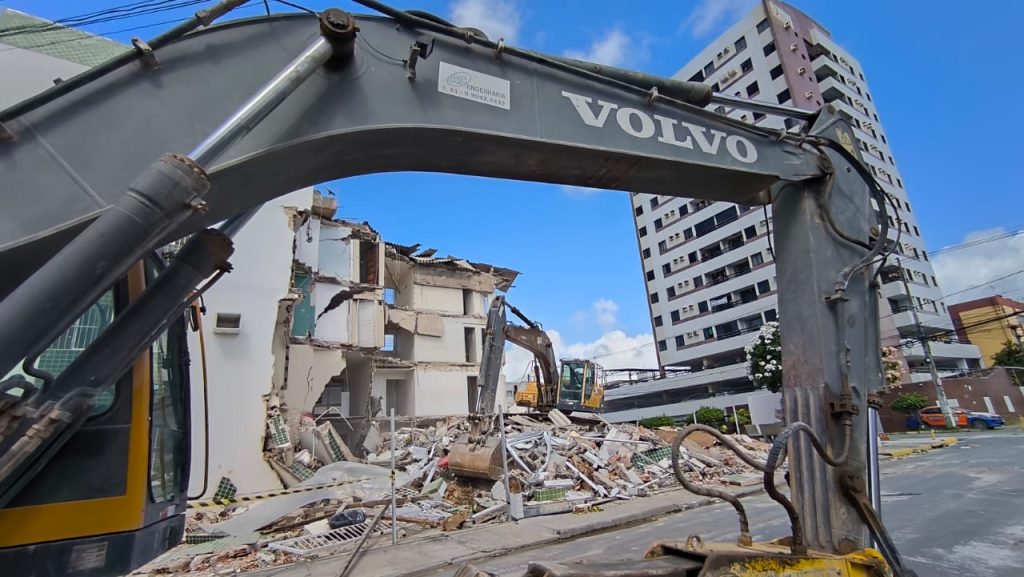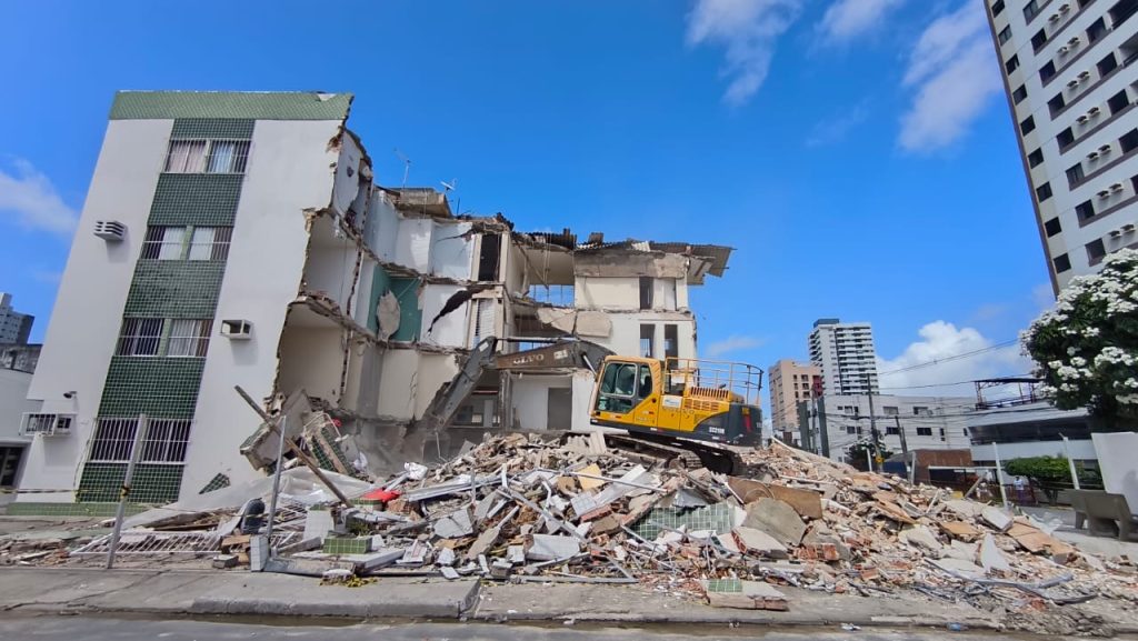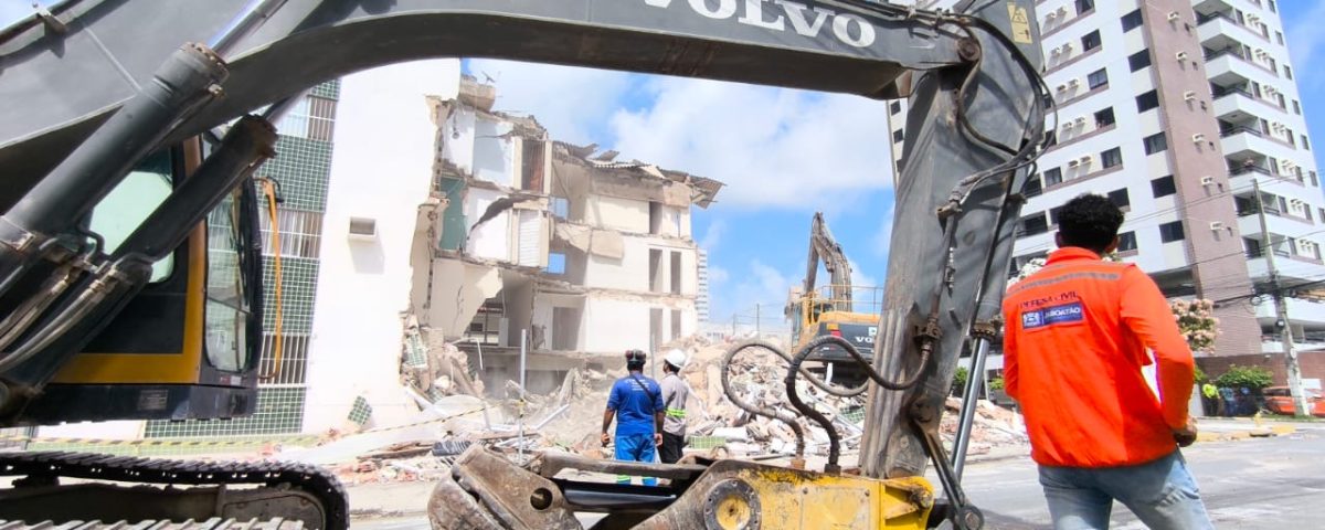 A Prefeitura do Jaboatão dos Guararapes iniciou, na manhã deste sábado (10), a demolição do edifício Kátia Melo, localizado no bairro de Piedade, que teve parte da estrutura comprometida e desabou na última terça-feira (06). A empresa contratada por meio de contratação emergencial já está atuando no local e a previsão é que os trabalhos sejam concluídos até a próxima segunda-feira (12).